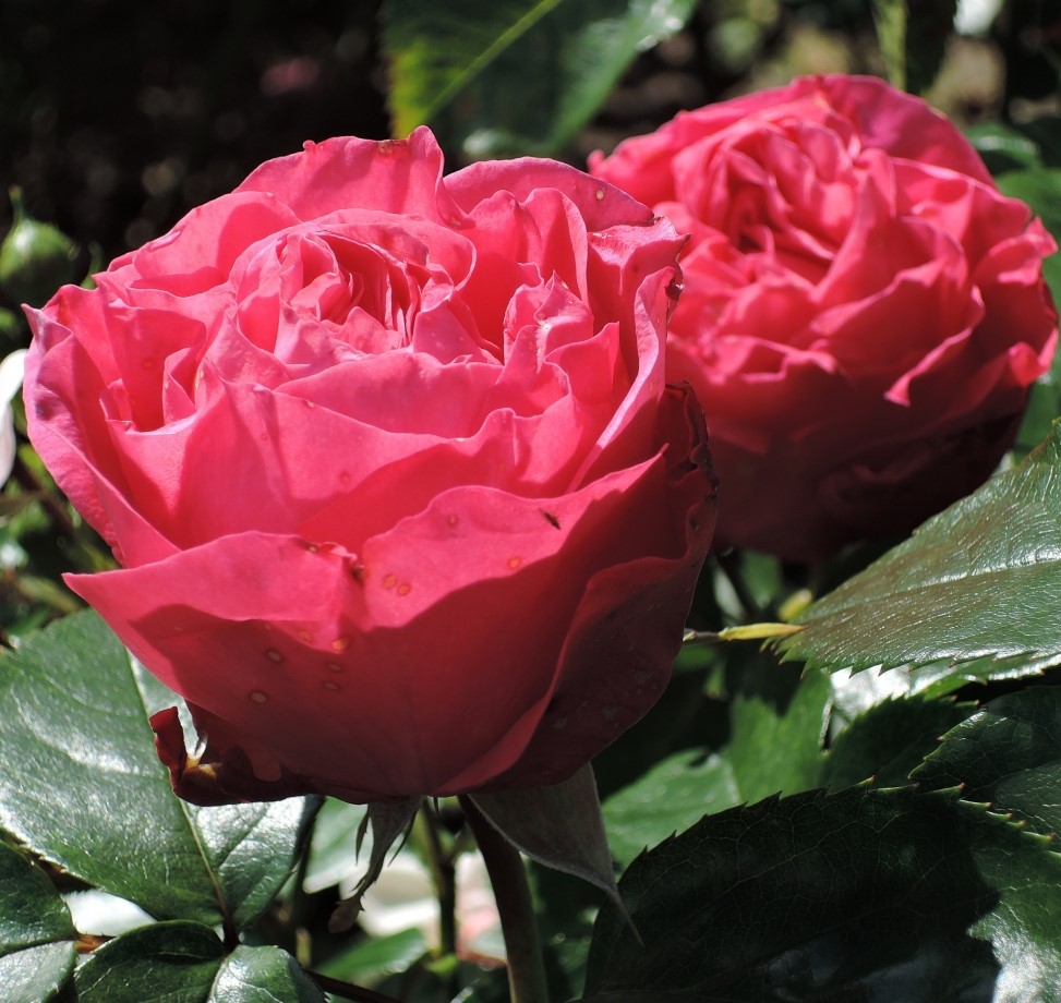 Кустарник прямой и высокорослый. В длину он достигает 80 см, а в ширину – 60 см. В зависимости от погоды эти значения могут меняться. Побеги густо покрыты плотной, насыщенно-зеленой листвой. Поверхность листовых пластин полуглянцевая. Цветки густомахровые, аккуратной формы, диаметром 8 – 10 см. Лепестки плотные, кораллово-красные, хорошо сохраняющие форму. Даже палящее солнце их не обесцвечивает. В среднем количество лепестков составляет 55 – 65 см. Бутоны формируются на побегах по одному или собраны в соцветия. Период цветения длится до глубокой осени, с кратковременными перерывами. Роза источает приятный, немного сладковатый аромат.